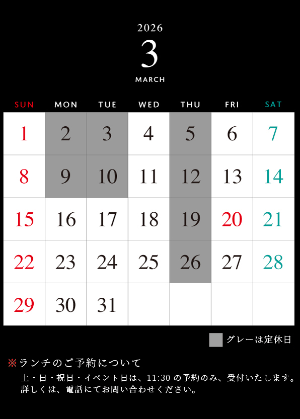 2026年2月より、ランチの営業時間が変わりました。